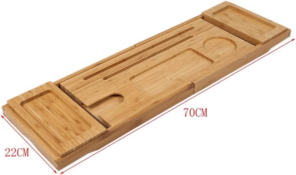 The bathtub caddy organizer is compatible with most bathtub models.The tub has silicone grips to prevent slipping and sliding.This shrink frame can also be used for shampoo, shower gel, clothing and bath towels.Its retractable design meets almost and styles of bathtubs.Two removable shelves can store your books, mugs, candles, towels and more.colour:brownMaterial:woodsize:70*22*4cmPackage Contents:1 * Bathtub Tray