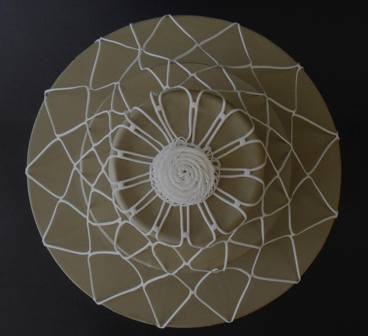 Dual sided, precision-engineered, intricately detailed silicone mat. Dots and line patterns expand into 'endless' veils and fishnet for wrapping mini cakes as well as draping cakes of all sizes. Includes a grosgrain ribbon/expanding caketop decoration. The reverse side of the mat is for smoothing a thin layer of SugarVeil to produce matte-finish SugarVeil bows and 'fabric'.
