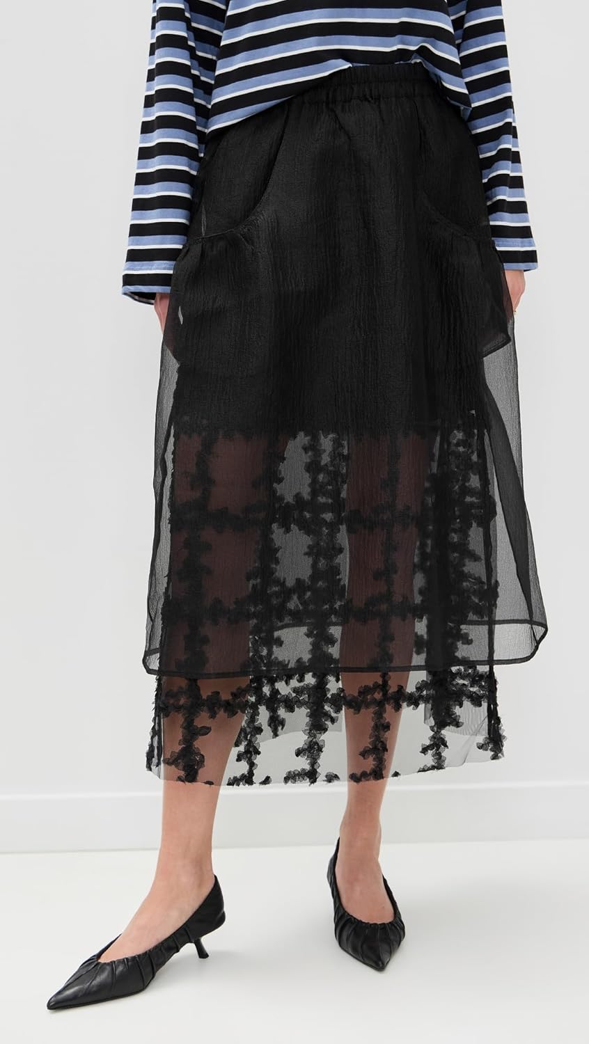The Sevara Skirt is a beautifully layered piece made in sheer organza. The sheer design is made of three layers with a slightly structured outer layer over a longer middle layer with beautiful flower pedals – Giving a cool texture on texture look for volume. A soft lining offers coverage, while the relaxed fit and elasticated waistband ensure a comfortable yet stylish fit. Truly a skirt that moves with you.