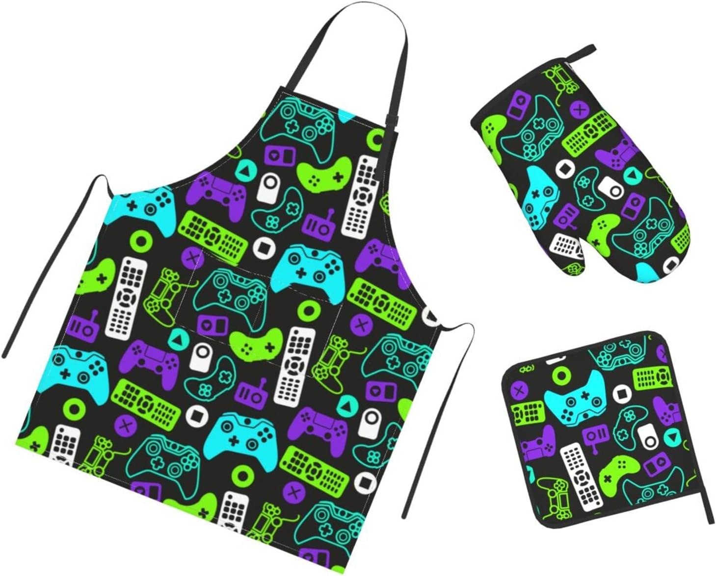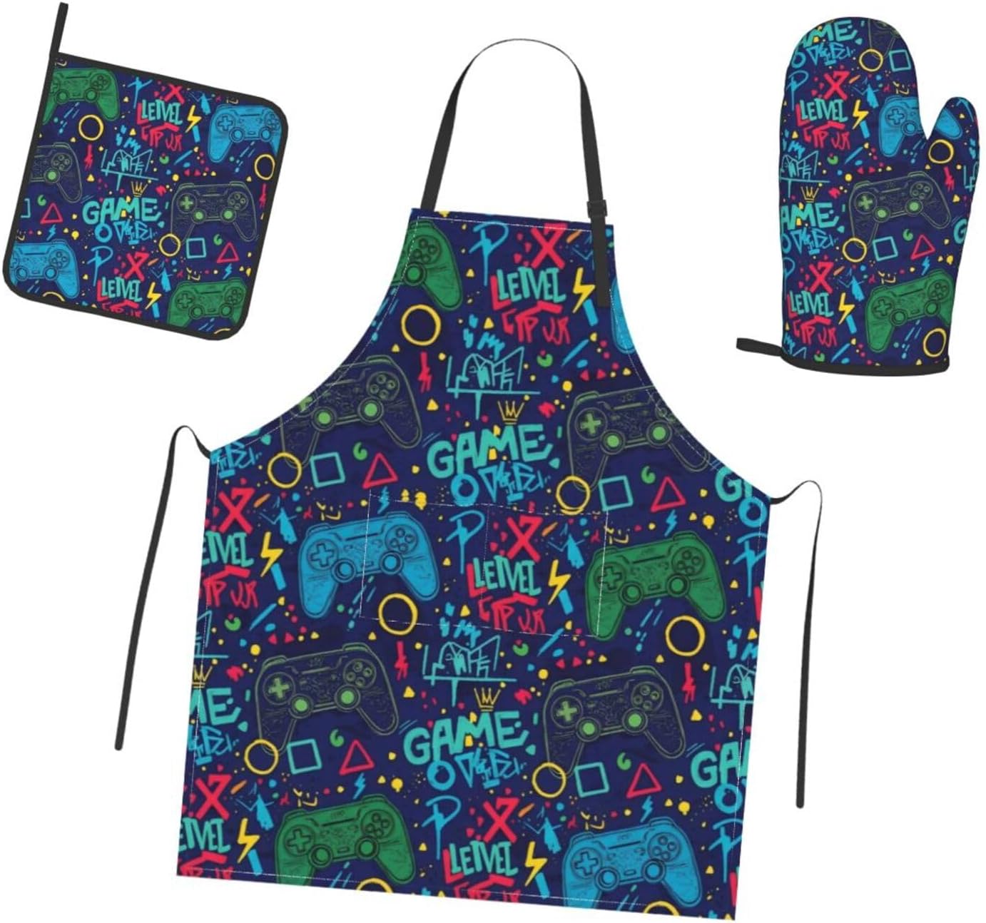 Are you looking for Cooking Apron Kitchen Set is funny and will long-last ? Congratulations, your search for the kitchen apron set is over. It's right here in front of your eyes.The bib provides good coverage and protection from kitchen grease, spills and food stains,can protect your clothes.Oven mitts help you say goodbye to scalding and steam burns.The oven mitts and pot holders heat resistant up to 356 F/ 180℃.This oven glove can meet your daily cooking needs.Package Includes:1pc adjustable apron+1pc square potholder + 1pc oven mitt.Multi-purpose:Ideal for kitchen,Cooking,Baking,Barbeque,camping, parties, picnics,garden,supermarket etc.So,it is premium quality cooking kitchen gift set - It is funny gift for women and men.