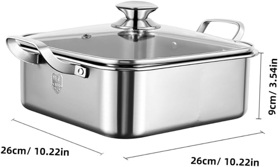 Package List 1 x cooking pot Characteristics -Color:Silver hot pot -Material:Stainless steel, glass double-flavor pot -Size:26.00X26.00X9.00cm/10.22X10.22X3.54in two-flavor hot pot - Crafted with glass and stainless steel materials, with good craftsmanship, and hot pot pan with divider. - Hot Pot with Divider is easy and convenient to use, and easy to store when not in use divided cooking pot. - With the handle, you can use the pan safely and conveniently, which is anti-scalding and non-slip divided hot pot. - Suitable for a variety of stoves, such as gas stoves, induction cookers, electric ceramic stoves, etc food cooking hot pot. - The pot is suitable for gatherings of people and can accommodate more food. Hot Pot is very useful double side cooking pot.Goods Informationdouble-flavor pot with divider Widely applicable, can be used for induction furnace, gas furnace, halogen furnace, electric pottery furnace.divided pot Are you looking for a and Hotpot Pot, then you miss our two-flavor hot pot, workmanship, both beautiful and .hotpot pan This pot has handles, which make it easy to move