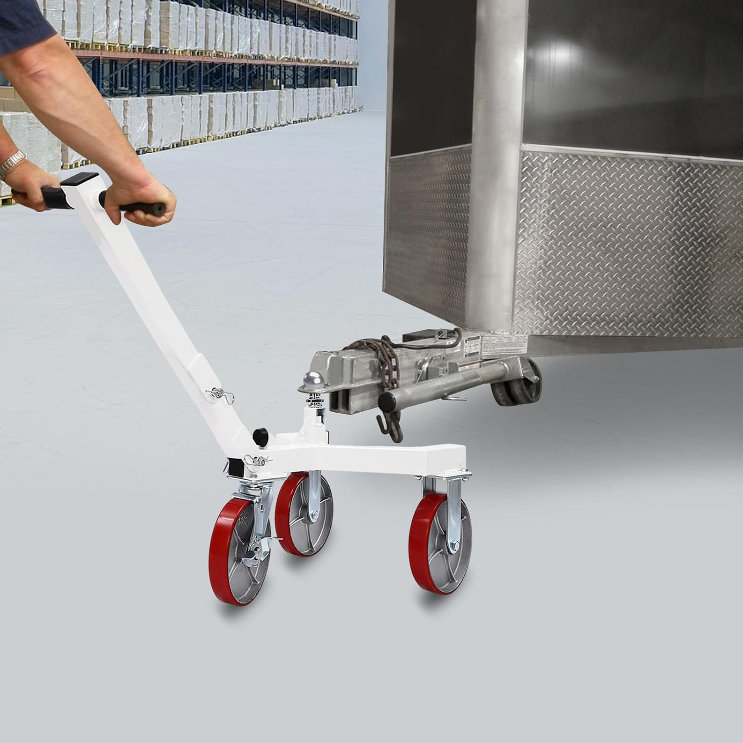 Specification Color: WhiteStyle: ModernAssembly Required: YesMount Type: Floor MountMaterials: Cold Rolled Steel, Cast Iron, Polyurethane, Rubber Process: Foaming, Baking PaintNumber of Wheels: 3Latch Thickness: 5/8 ''Tube Material Thickness: 1/8 ''Max. Wheel Load-Bearing Capacity: 907.18kg/2000lbsMax. Ball Rack Load-Bearing Capacity: 1587.57kg/3500lbsHitch Ball Rack Adjustable Angle: 360°Pull Rod Adjustable Angle: 0-115°Hitch Ball Rack Adjustable Height: 0-35mm/0-1.38in Wheel Diameter: 20cm/7.9inPull Rod Adjustable Length: 53.5cm/21.06in or 83cm/32.68in Product size: 54.2 * 54 * 100.28cm/21.33 * 21.3 * 39.5inPackage size: 53 * 53 * 20cm/20.86*20.86*7.87in Gross weight: 24kg/52.91lbsPackage Included1*Adjustable Trailer Mover Other Accessories for Assembly