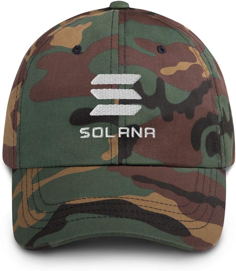Dad hats aren't just for dads. This one's got a low profile with an adjustable strap and curved visor. 100% chino cotton twill Green Camo color is 35% chino cotton twill, 65% polyester Unstructured, 6-panel, low-profile 6 embroidered eyelets 3 ⅛” crown Adjustable strap with antique buckle Head circumference: 20 ½” - 21 ⅝” Blank product sourced from Vietnam or Bangladesh