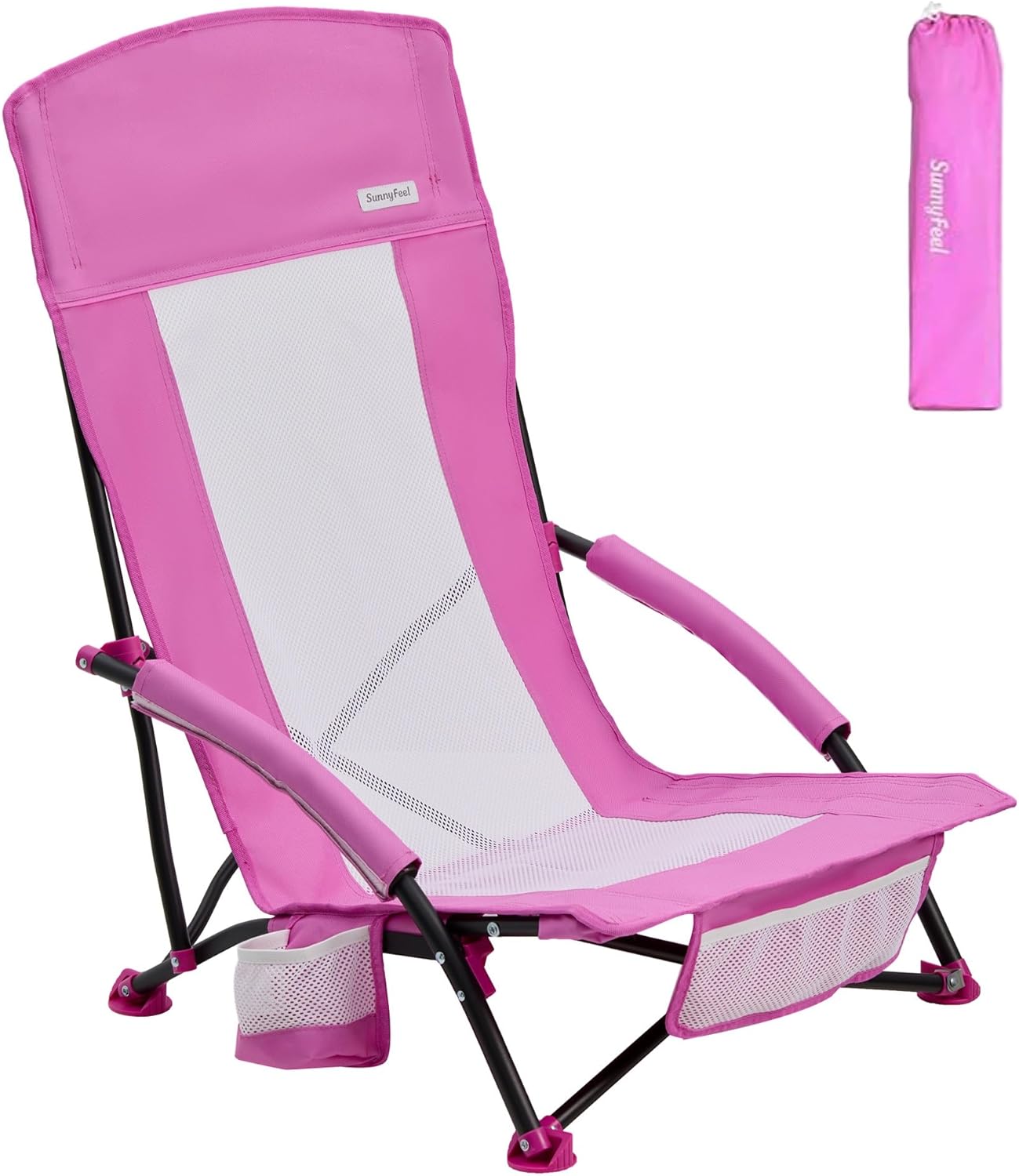 • Extremely Comfy & Space Saving: The low beach chair can provide you an ultimate soft seating experience.The breathable and cooling mesh back design makes sitting for long comfortable for you. The small folding size (29.5×7.1×7.1 inches) saves your room while not on duty.